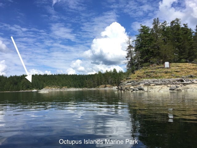 Up early to catch slack at Beasley Passage at 7:52. Although the wind died down in Drew Harbour last night, and was quiet this morning, when we got out into open water it was more windy. Just a short jaunt though and we were back in protected waters, however that meant we lost internet - it's a tradeoff. No one else around as we easily transited Beasley Passage and then went up into Waiatt Bay where the Octopus Islands Marine Park is. We anchored in "Osprey Cove" to wait until slack at Upper Rapids at 14:10 (or later). We had some breakfast and then went out for a dinghy ride to look around. Two different boats actually left and headed out which we thought was pretty weird given that it was "max" flood in both rapids at the time - weird.