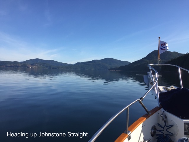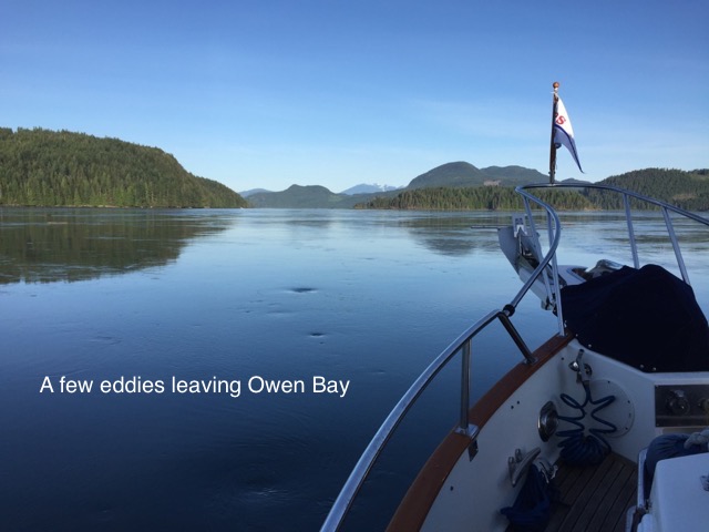 Leaving Owen Bay was a bit squirrelly but not too bad. But arriving in Johnstone Straight shortly afterwards, we found it "like glass". I've never seen it like that and we were amazed and excited.