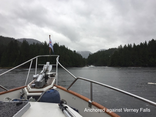 We were able to anchor right in front of Verney Falls. We got close enough to them so that the fresh water coming into the inlet keeps Spellbound in the same direction and we don't have to worry about the boat swinging around in a circle. We should stay in the same direction all night. (Better check tomorrow's Blog entry to see if it worked!). Time for an anchor steam on the flybridge.