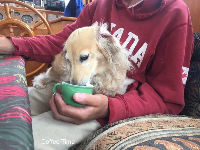 Back towards the marina area looking for a late lunch, we ended up at "Cowpaccinno's". Really good coffee and really good panini's and Bella got a "pawscotti" biscuit. All is good in the world.